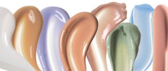 Correction of problem areas and minor defects is carried out using a corrector and concealer. They can “hide” dark circles under the eyes, pimples, protruding veins, and pigmentation. To consolidate the camouflage effect, you should apply foundation and powder, which also provide an even complexion.