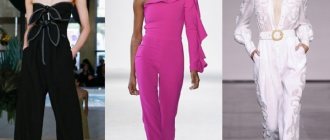 Очень интересны модели с асимметричным пиджаком, короткой жилеткой, отделкой в виде оборок, рюшей, воланов, костюмы с яркой изнаночной стороной, блузкой-«обманкой», баской и многие другие.